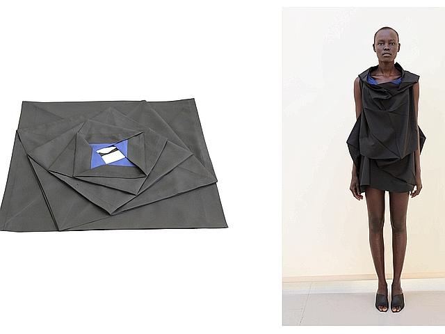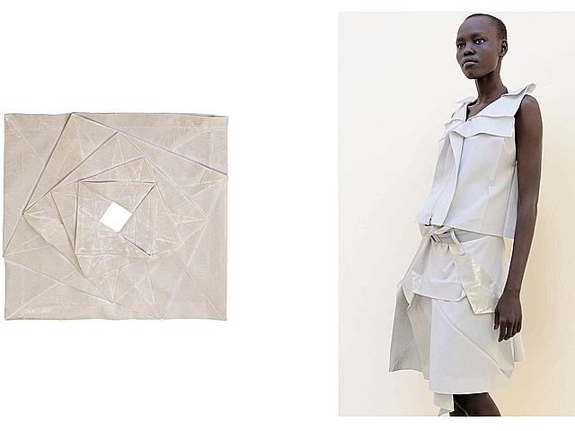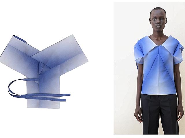 במסגרת 132.5 מיאקי יצר בגדים מפיסת בד אחת שבמצב שטוח נראית כמו ריבוע, כוכב או מערבולת וכשאוחזים בקצה המקופל ומושכים אותו כלפי מעלה היא הופכת לשמלה, חולצה, חצאית או מכנסיים פיסוליים בתלת-ממד. מספר 1- הוא מימד אחד, מספר 3- תלת-מימדי, מספר 2- שוב למצב מקופל, ומספר 5-את המימד החמישי- הרגע שבו הבגד נלבש ומתעורר לחיים. 132.5 מסמל את השילוב בין אוריגמי, פורמולות מתמטיות וחדשנות חומרית.